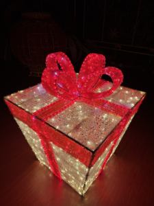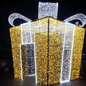 תאורת לד תלת מימדית גדולה בצורת קופסת מתנה לחג המולד עם נצנצים, התקנה קלה