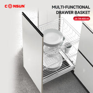 סל אחסון רב תכליתי לארון מטבח עם מסילה נשלפת, מתלה איכותי לארון מזווה של קונסון