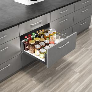 מערכת מגירות זכוכית G13 מודרנית סִגְנוֹן עם קופסת פלדה דקה לסגירה רכה לארונות מטבח