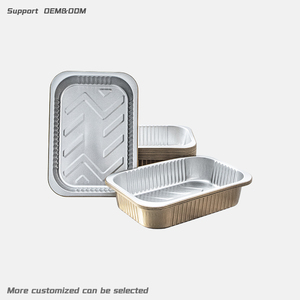 מגש אפייה חד פעמי מלבני 2300 מ\\\"ל, עשוי נייר אלומיניום בצבע זהב, עם מכסה PET, ידידותי לסביבה, לאוכל מהיר.