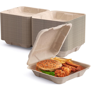 קופסת אוכל חד פעמית מקליפת נייר קנה סוכר, ציפוי PP PLA PET, למינציה, לאריזת מזון מהיר