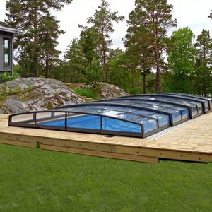 מכסה בריכה ממונעת מכסה 4 מ 'x 10 מ' חורף אוטומטי דק שמש גדר קיפול בריכת שחיה כיסוי משאבת בית זכוכית