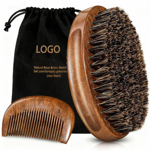 סט מברשת ומסרק זקן מעץ טבעי איכותי ביותר עם לוגו מותאם אישית, מברשת זקן עם זיפי חזיר לגברים