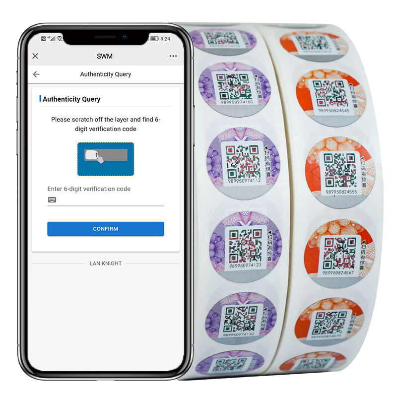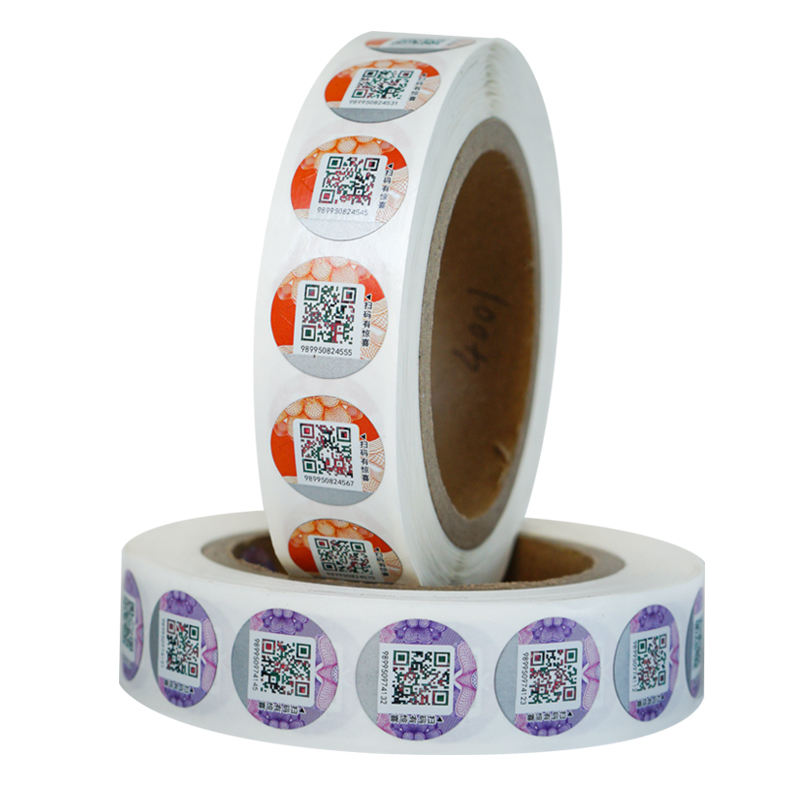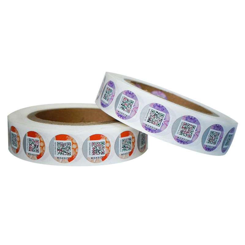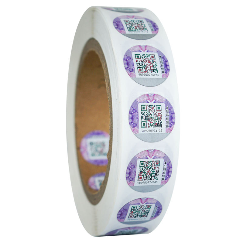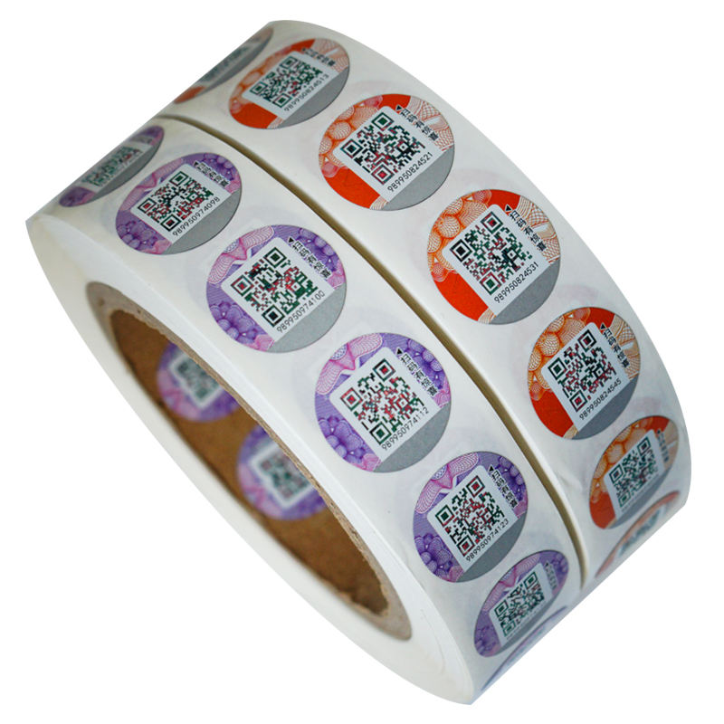 สติกเกอร์รักษาความปลอดภัยแบบม้วนรหัส QR สีสันสดใสฉลากป้องกันการปลอมแปลงพร้อมซอฟต์แวร์รักษาความปลอดภัย