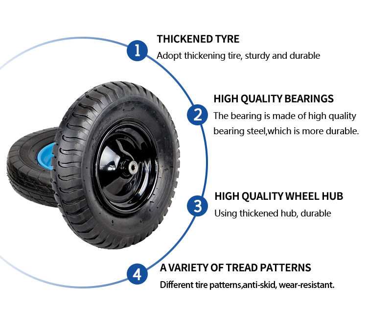 חומר עמיד ואיכותי: צמיג המוליכה שלנו עשוי מגומי טבעי, ומבטיח עמידות לאורך זמן ועמידות ללבוש וקרעים, מושלם לשימוש כבד בתעשיות שונות כגון בניית חנויות וחקלאות חומריות.